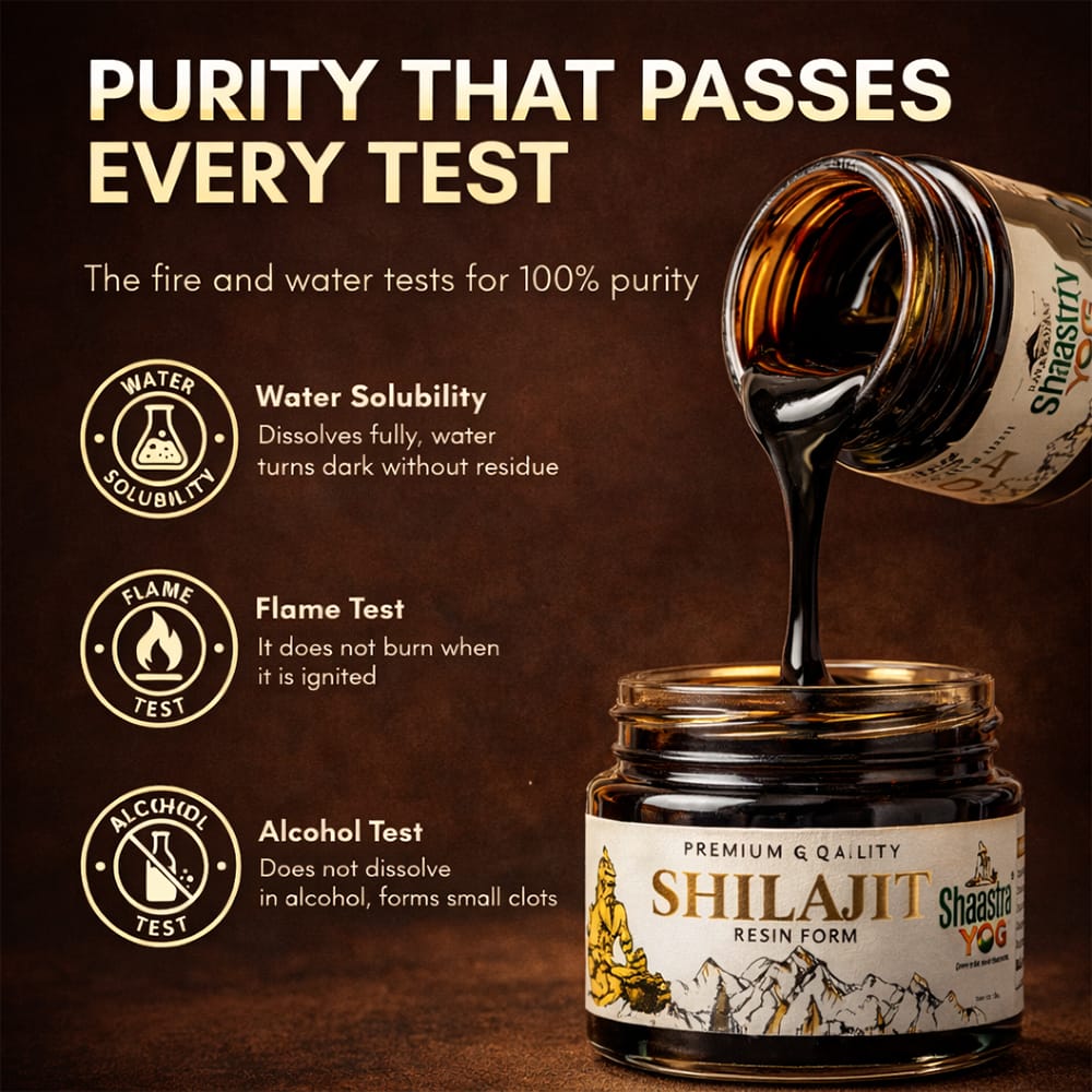 Shaastra Yog is a premium wellness supplement crafted with the finest Himalayan Shilajit to naturally enhance strength, energy, and overall vitality. This carefully formulated blend supports stamina, endurance, and daily performance, helping you stay active, focused, and resilient throughout the day. Rooted in traditional Ayurvedic wisdom and refined for modern lifestyles, it delivers essential minerals and bioactive compounds that promote holistic well-being, muscle recovery, and natural vitality. Experience the combined power of nature and science for a healthier, stronger, and more energetic you.